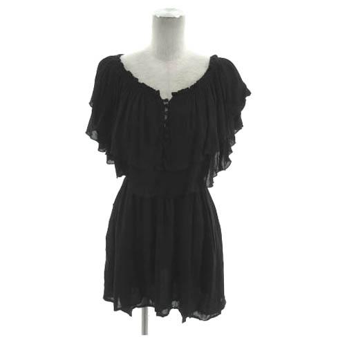 【中古】LIMITLESS LUXURY カットソー チュニック丈 フレンチスリーブ フリル ティアード ブラック 黒 レディース