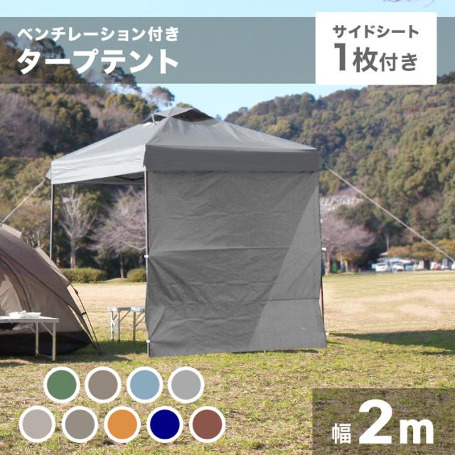 タープテント 2m×2m ワンタッチ テント サイドシート付き ベンチレーション タープ 日除け 撥水 耐水圧 1200mm 頑丈 紫外線防止 UVカット ワンタッチテント ワンタッチタープ UV加工 簡単 大型 軽量 日よけテント アウトドア キャンプ 海 BBQ 送料無料 MERMONT WEIMALL