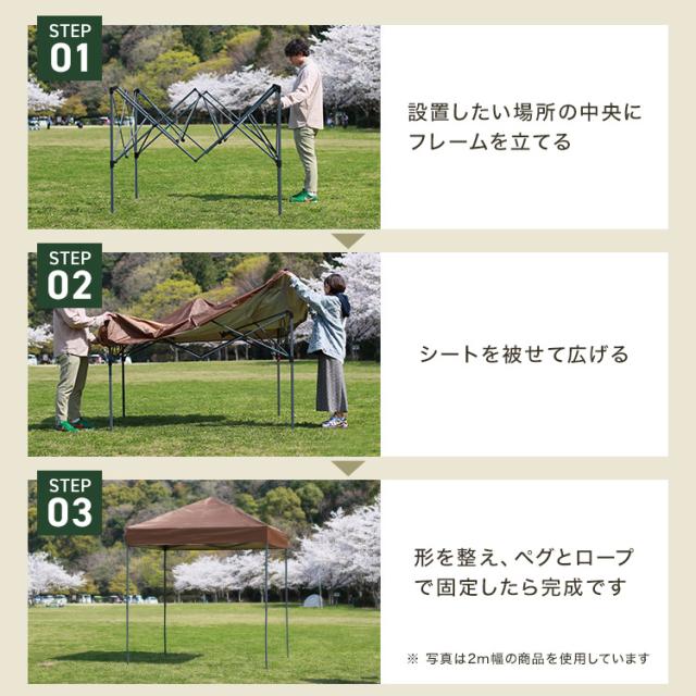 コンパクトなサイズ200×200cmのワンタッチタープテントです。