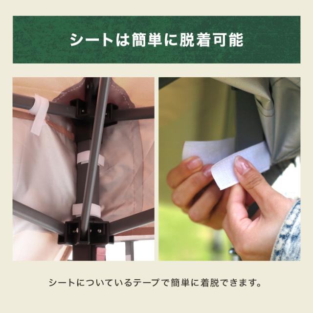 耐水圧1200mmで、急な雨が降っても安心の撥水加工が施されています。大人数のバーベキューやスポーツ観戦、アウトドア、休憩所にぴったり。