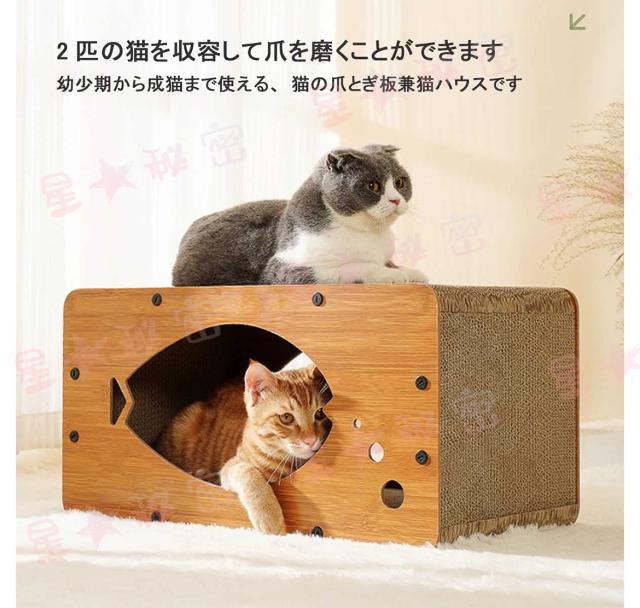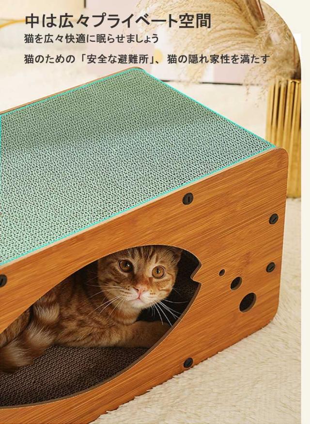 猫 爪研ぎハウス キャットハウス 箱式 木製 ダンボールハウス 爪とぎ 段ボール 2-in-1 室内 ハウス 爪研ぎ段ボール ストレス解消 両面使える 通気 組立簡単