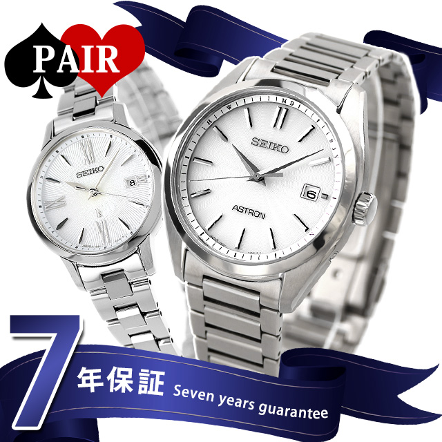 正規品 7年保証キャンペーン 送料無料 ペアウォッチ セイコー アストロン ルキア 日本製 電波ソーラー メンズ レディース 腕時計 pair-seiko95 SEIKO ASTRON LUKIA ORIGIN Grow アナログ ◆ アストロンとルキアの組み合わせをななぷれが提案♪ メンズモデルは、初代クオーツアストロンのケース意匠を踏襲しつつ、ドレスウオッチらしい薄型フォルムへとアップデート。広見切り、細縁の王道ダイヤルレイアウトは、文字情報を極力排し、仕上げ分けされた時分針によって高い判読性・視認性を誇る実用性の高いモデルです。レディースモデルは、「カラーリリー」をデザインモチーフにしたソーラー電波時計。ダイヤルベースは花びらの質感をイメージし、外周にかけて少しカーブがかった繊細なパターンの型打ちを採用。思わず見入ってしまうほどの美しい仕上げになっています。ジャケットスタイルからオフのワンピーススタイルまでどんなスタイルでも合わせやすいデザインです。 メンズ品番:SBXY029 レディース品番:SSVW205