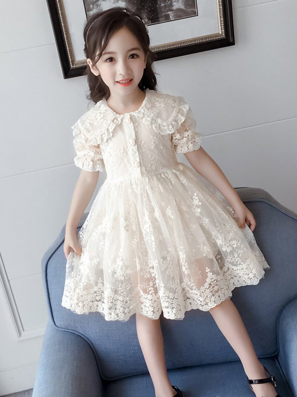 キッズドレス ワンピース レース 膝丈 ボリューム袖 ドレス シンプル 袖あり パフスリーブ パフ袖 半袖 長袖 ピアノ 発表会 子供ドレス プリンセス風 お姫様 花柄 上品 エレガント 女の子 結婚式 子供 フォーマル 可愛い 誕生日 七五三 ブライズメイド 演出 イベント 司会 写真用 リゾートワンピース 90 100 110 120 130 da119m4m4zr