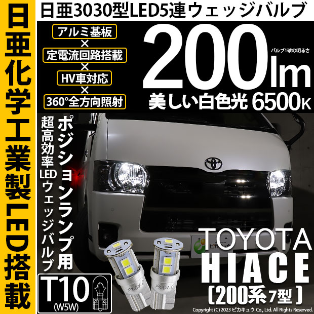ピカキュウ,LED専門店,LEDバルブ,LED,SMD,T10,W5W,日亜化学工業,日亜,3030,ポジション,カーテシ,爆光,200lm,200ルーメン,トヨタ,TOYOTA,ハイエース,HIACE,GL,SUPER GL,スーパーGL,200系,7型