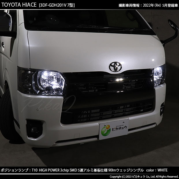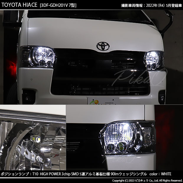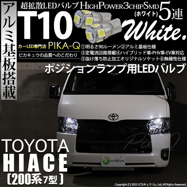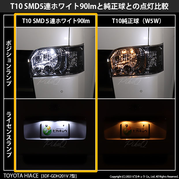 ピカキュウ,LED専門店,LEDバルブ,LED,SMD,T10,W5W,T10 HIGH POWER 3CHIP SMD 5連ウェッジシングル球,アルミ基板,90lm,長持ち,ホワイト,ポジションランプ,車幅灯,トヨタ,TOYOTA,ハイエース,HIACE,GL,SUPER GL,スーパーGL,200系,7型