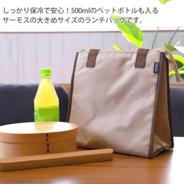 しっかり保冷で安心!500mlのペットボトルも入るサーモスの大きめサイズのランチバッグです。