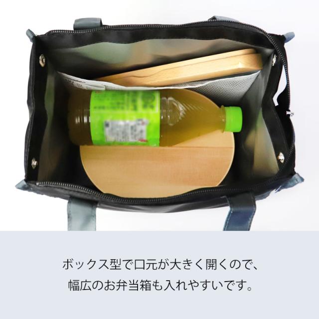 ボックス型だから口元が大きく開くので、幅広のお弁当箱も入れやすいです。