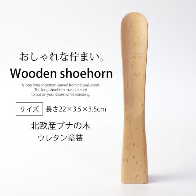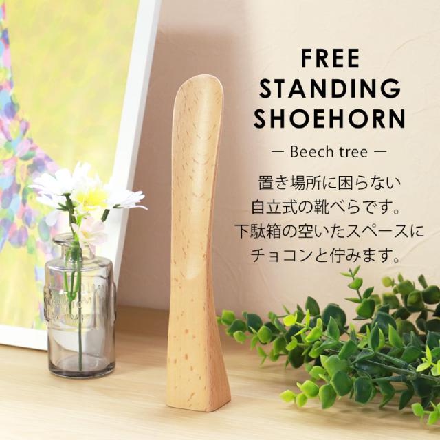 靴べら 木製 自立式 22cmブナの木 おしゃれ 靴ベラ くつべら 自立タイプ 箱入り 北欧風 省スペース かわいい スタイリッシュ シンプル 玄関 贈り物 プレゼント ギフト 記念品