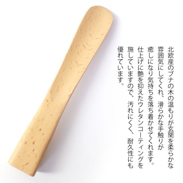 部屋の和洋を問わない、シンプルなデザイン、ナチュラル仕上げ。使いやすく、ぬくもりある靴べらをぜひお試しください。