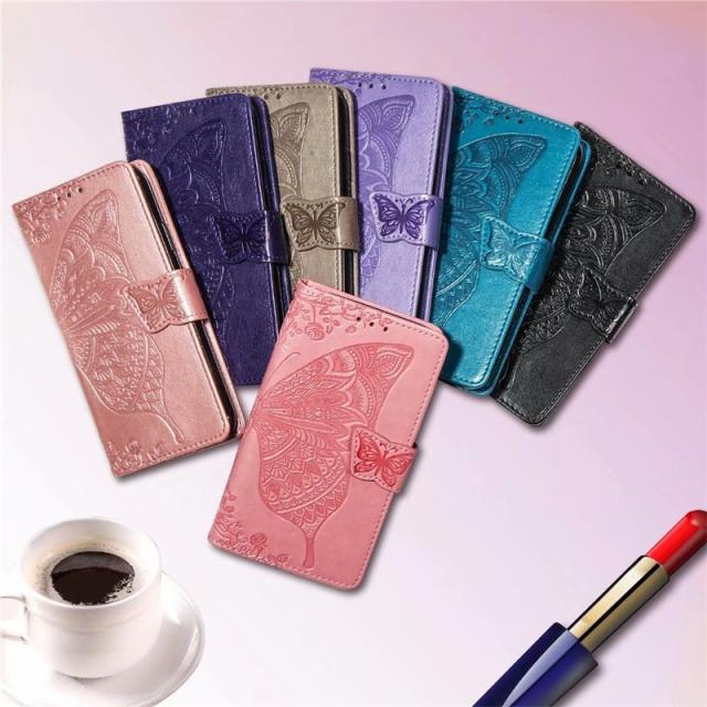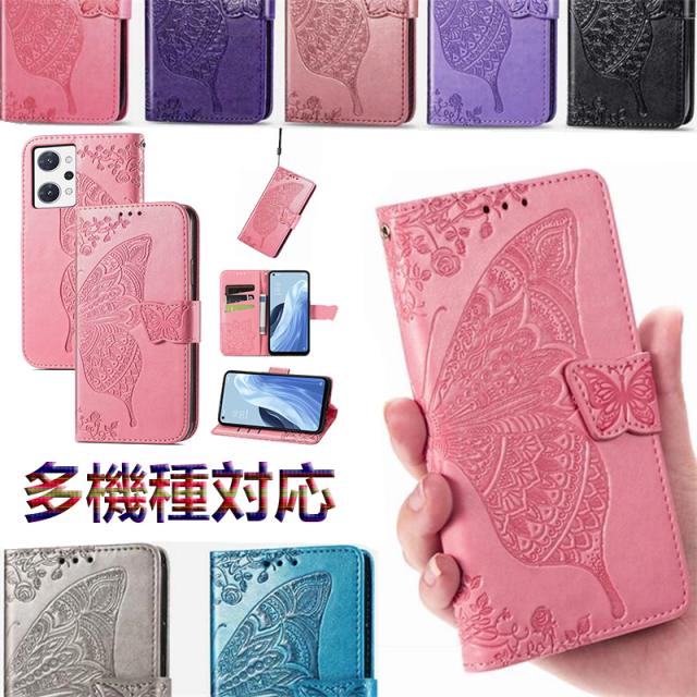〇華やかな蝶レザー型押しされた手帳型スマホケースです。