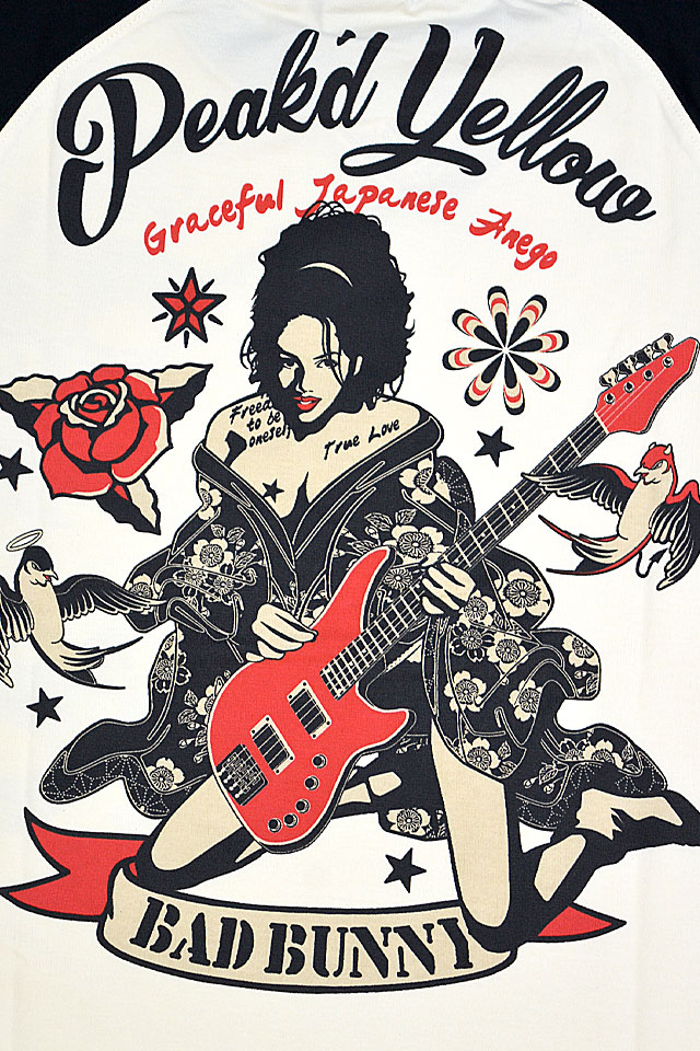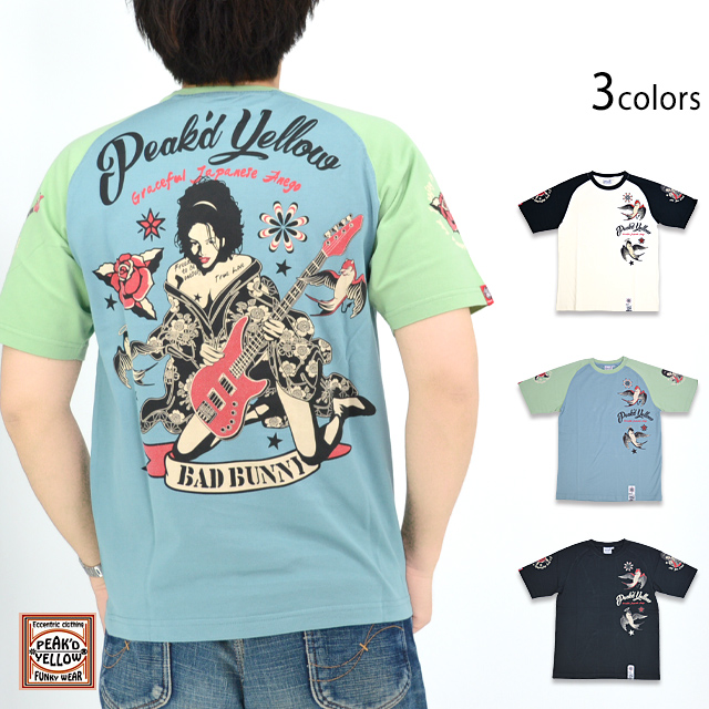TATTOO半袖Tシャツ Peak'd Yellow PYT-236 ピークドイエロー 和柄 和風 着物 ギター 姉御 花魁 刺青