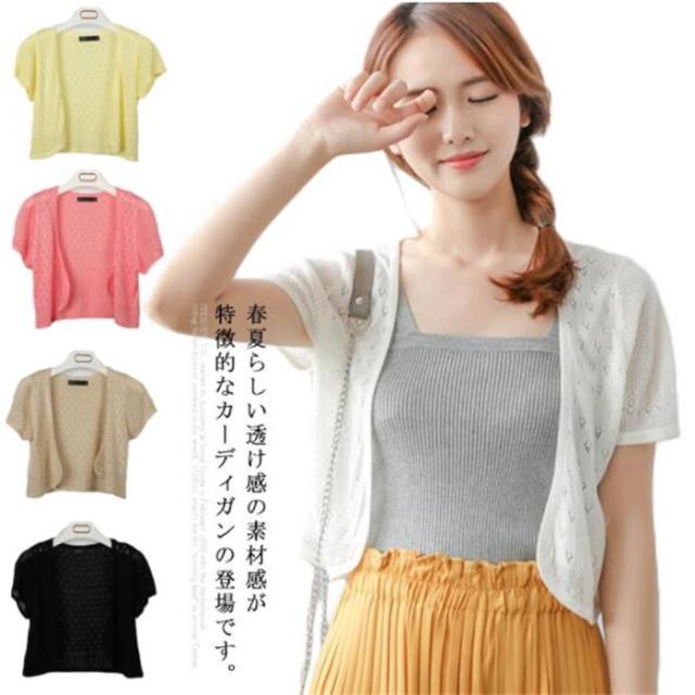 送料無料! カーディガン レディース 透け感 半袖 サマーカーディガン ショート丈 透かし ニットカーディガン サマーニット 薄手 透かし トップス 羽織り Vネック メッシュ袖