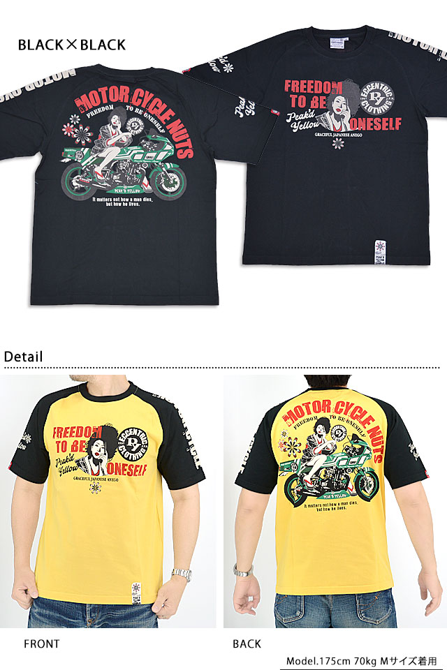 バイク半袖Tシャツ Peak'd Yellow PYT-238 ピークドイエロー 和柄 和風 着物 単車 姉御 花魁 エフ商会