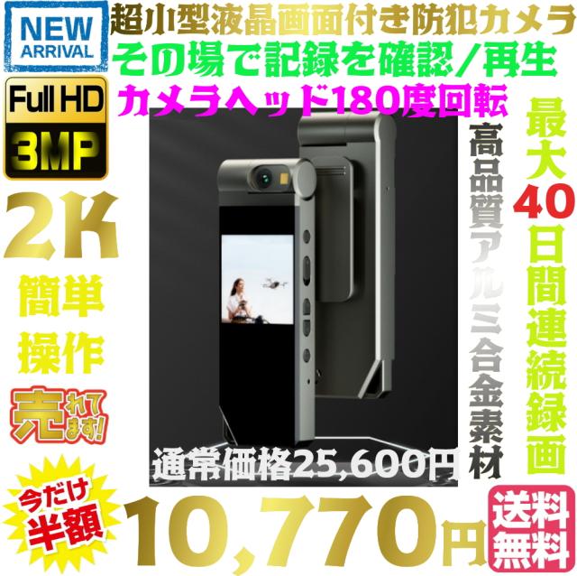 【送料無料・税込み】最新 TB-B40 液晶 画面 付 2K 300万画素 高画質 回転 ヘッド 超 小型 防犯 カメラ モニター付き モニター 付き 3MP 1080 P 録画 録音 写真 簡単 操作 バッテリー 内蔵 その場 確認 マイクロSDカード 対応 カラー 液晶 防犯カメラ 証拠 記録 保存 人気