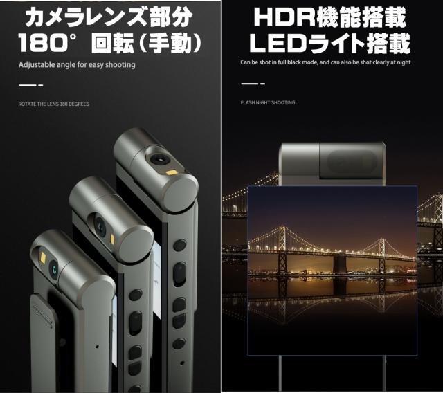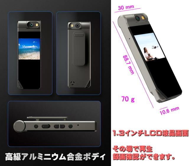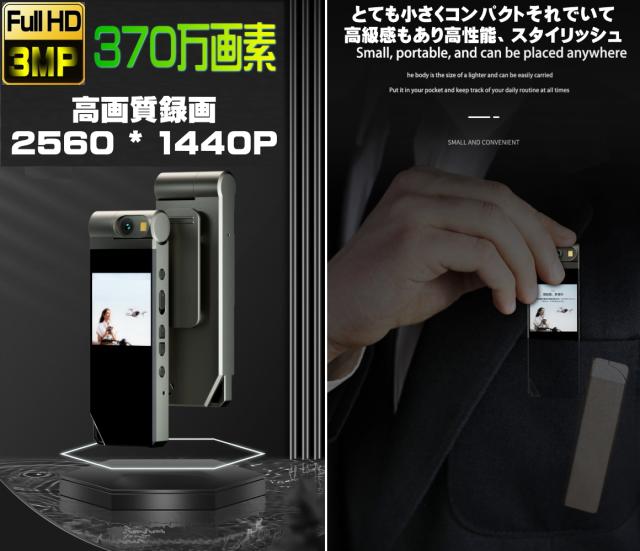 高画質2K 3MP 2560x1440P 300万画素、1080P FHD,720P録画!最大3時間バッテリー稼働!マイクロSDカード最大40日間連続録画!1.2インチTFTカラーLCD液晶画面内蔵。