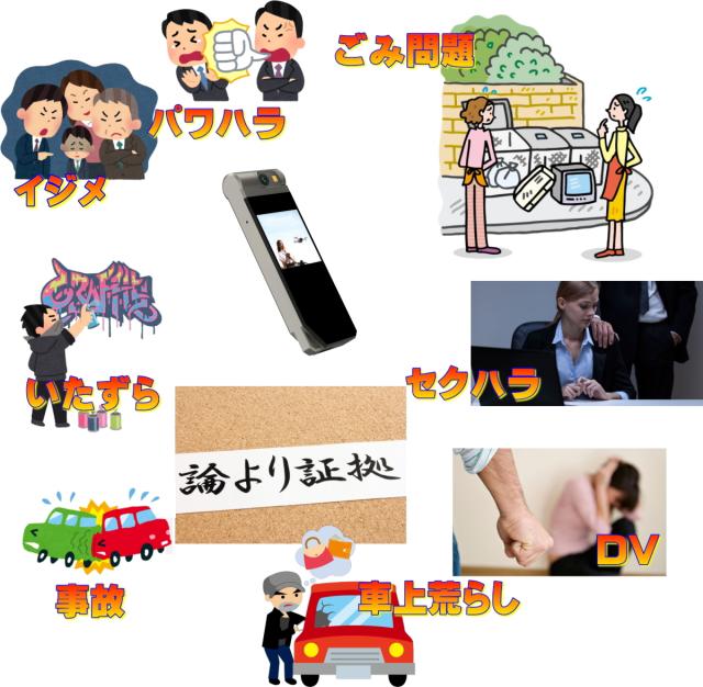 【証拠】プロの警備員、地域防犯係、ショップ、会社、学校、他にも家庭内暴力DVの証拠、セクハラ&パワハラの証拠、いじめの証拠、今や社会問題となっている事を証拠として残す方が増えてきております。