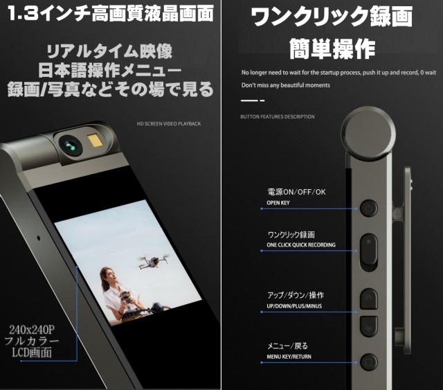 【簡単操作】マイクロSDカードを入れて電源ON、1ボタンで録画も録音も開始!★写真撮影も簡単