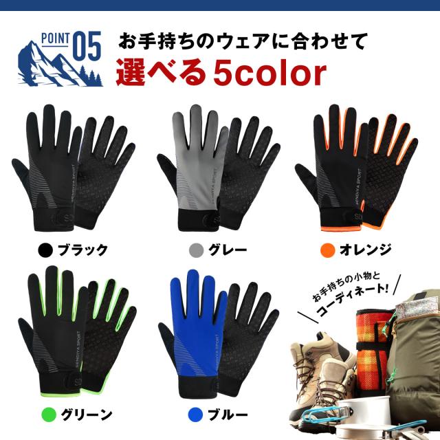 登山 手袋 トレッキンググローブ 夏 夏用 スマホ操作 滑り止め 自転車 ランニング メンズ レディース 防滑 薄手 おしゃれ アウトドアグローブ スポーツ キャンプ フィールド グローブ 男女兼用 人気 黒 ブラック グレー 送料無料
