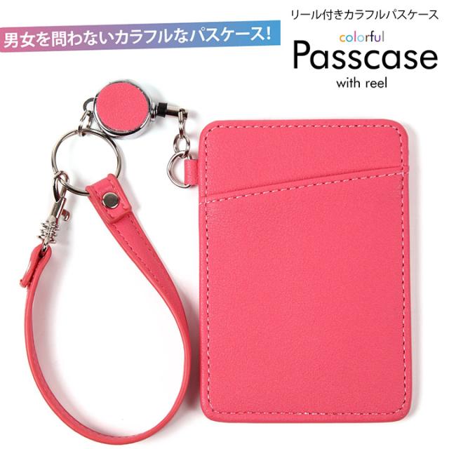 パスケース リール付き カラフルパスケース 【送料無料 お買い得 人気 最安値挑戦】ピンク リールパスケース 定期入れ メンズ レディース ストラップ付き 可愛い カード入れ 新品 便利 通勤 通学 安心 防犯 プレゼント ギフト