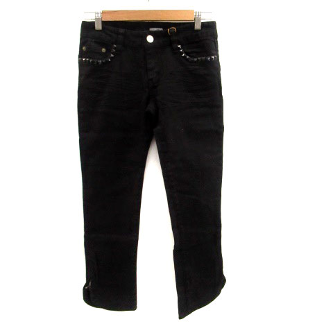 【中古】未使用品 スナイデル snidel デニムパンツ ジーンズ テーパード アンクル丈 スタッズ 1 ブラック レディース