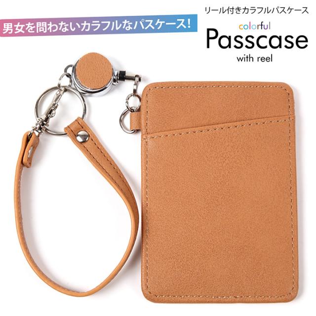 パスケース リール付き カラフルパスケース 【送料無料 お買い得 人気 最安値挑戦】キャメル リールパスケース 定期入れ メンズ レディース ストラップ付き 可愛い カード入れ 新品 便利 通勤 通学 安心 防犯 プレゼント ギフト