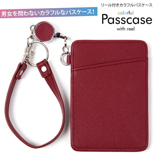 パスケース リール付き カラフルパスケース 【送料無料 お買い得 人気 最安値挑戦】ワインレッド リールパスケース 定期入れ メンズ レディース ストラップ付き 可愛い カード入れ 新品 便利 通勤 通学 安心 防犯 プレゼント ギフト