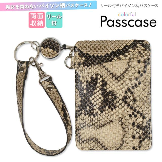 パスケース リール付き カラフルパスケース 【送料無料 お買い得 人気 最安値挑戦】パイソン柄ブラウン リールパスケース 定期入れ メンズ レディース ストラップ付き 可愛い カード入れ 新品 便利 通勤 通学 安心 防犯 プレゼント ギフト