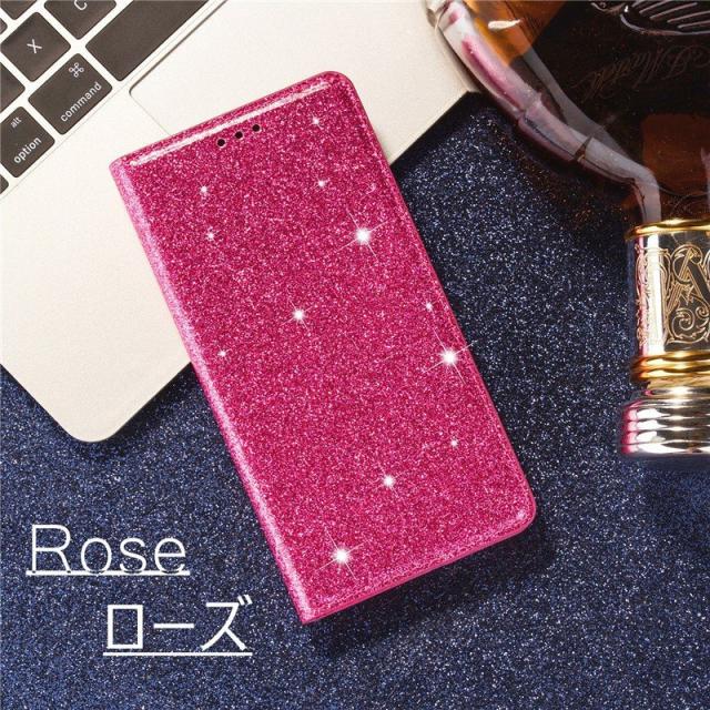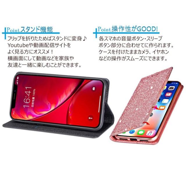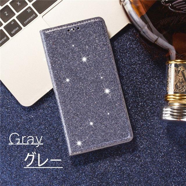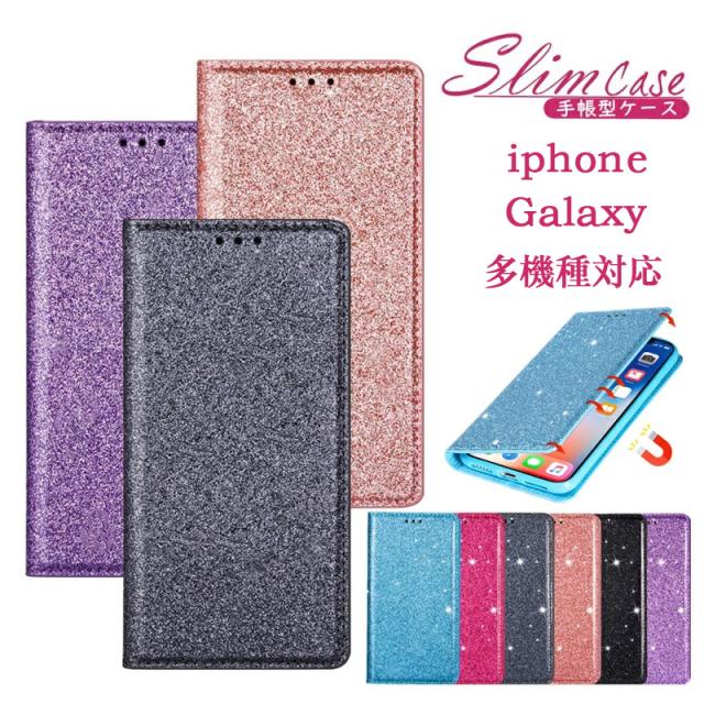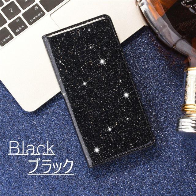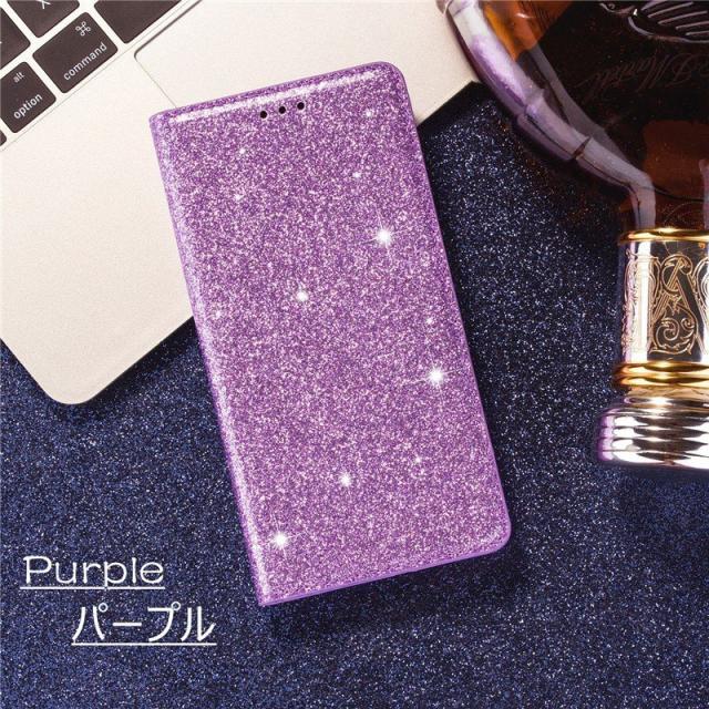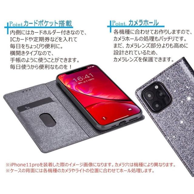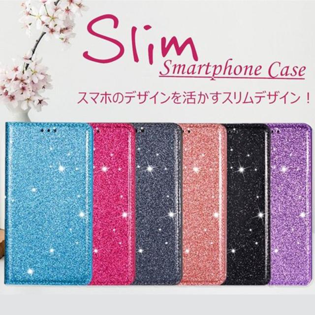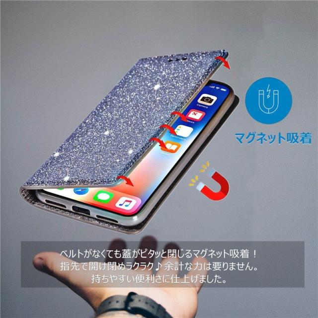 .グリッターのきらめきが美しい高級感漂う手帳型ケースです。