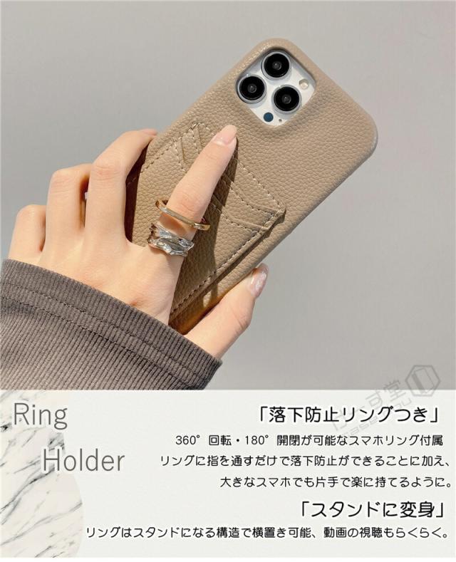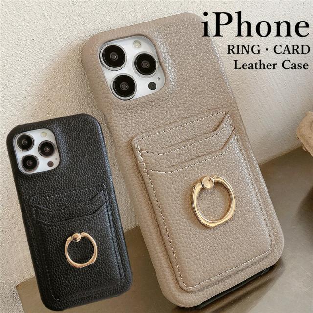 iPhone17 air ケース リング付き カード入れ iPhone16e 16pro スマホカバー レザー調 カード収納 カードポケット iPhone 14 13 12 11 手帳型 スマホケース アイフォン15 plus se3 13 mini 12 mini 13Pro 12 11 Pro XR Xs Max Se2 8 14 Plus 可愛い おしゃれ 耐衝撃
