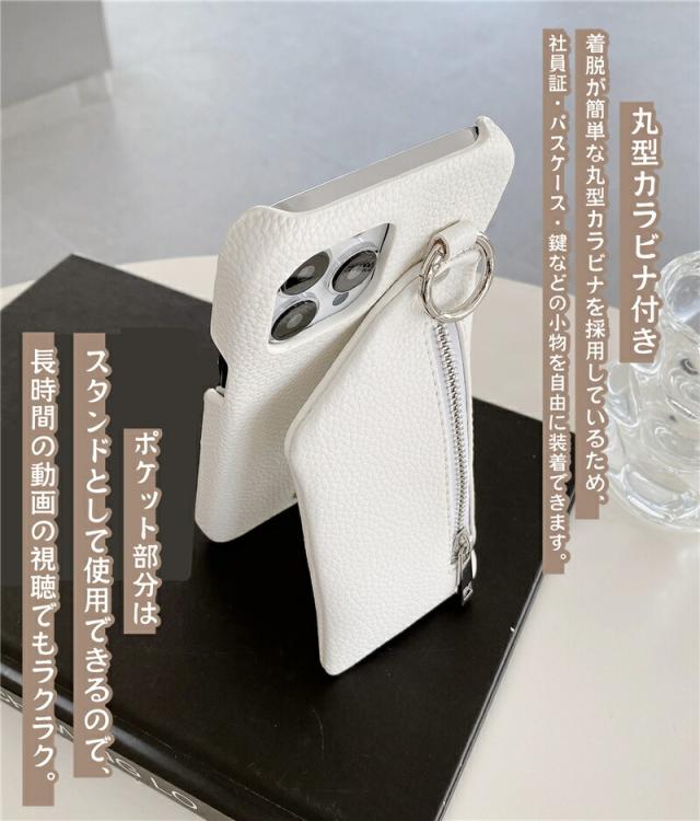 ポーチ付き iPhone 17 16e 15 14 13 ケース 小物入れ くすみ かわいい iPhone16 15Plus 15Pro 14Plus 13mini 13 pro max 12mini 12 11 promax SE3 第3世代 XR Xs Max 8 Plus スマホケース コインケース 小物入れ スタンド カード入れ 丸型 カラビナ 韓国 レディース