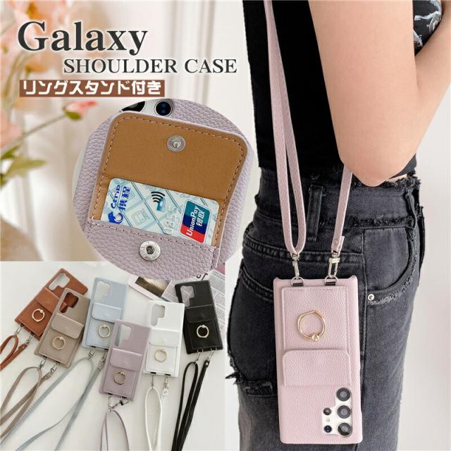 リング付き スマホケース ギャラクシーA36 S25 S24 FE S23 A55 ショルダーケース カードホルダー Galaxy A54 A53 A52 5G S20 S21 S22 Ultra S10 S23FE note20Ultra S21plus S20+ ケース 携帯ショルダー スマホ リング ストラップ 付き スタンド 手ぶら 女子 360度リング