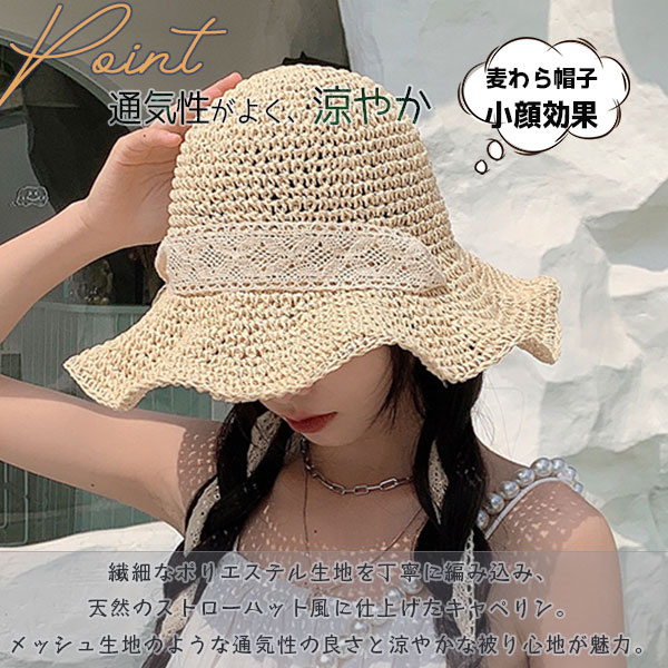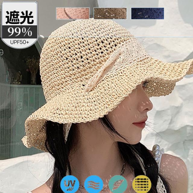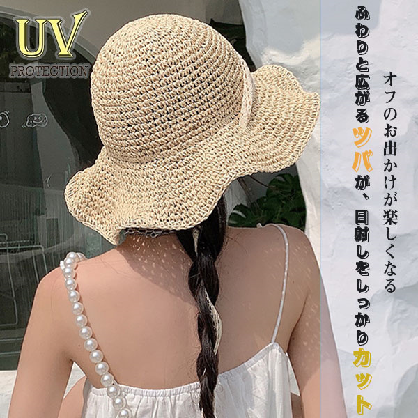 ポイント超超祭 麦わら帽子 ハット 日焼け止め 帽子 つば広 ストローハット 折りたたみ リボン キャペリンハット レディース 春夏 UVカット 紫外線対策 運動会