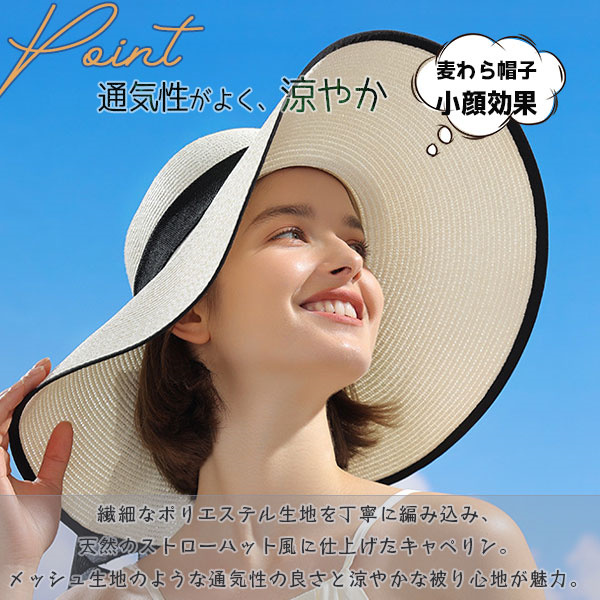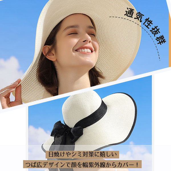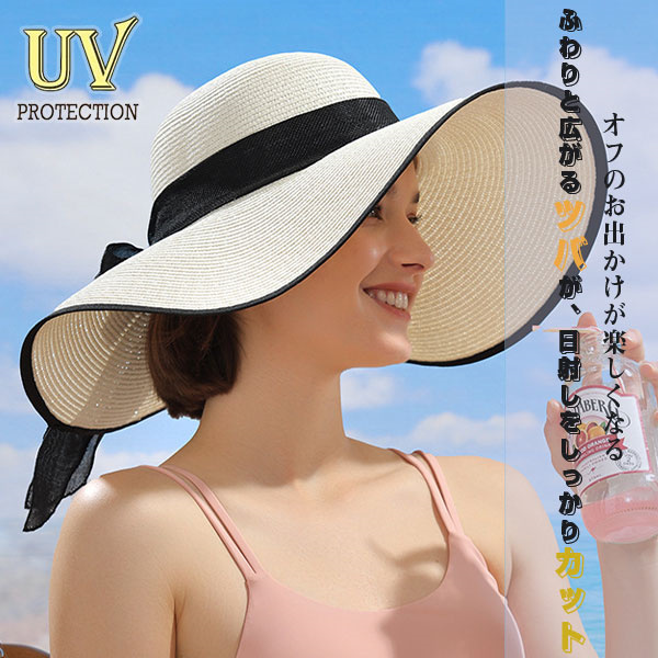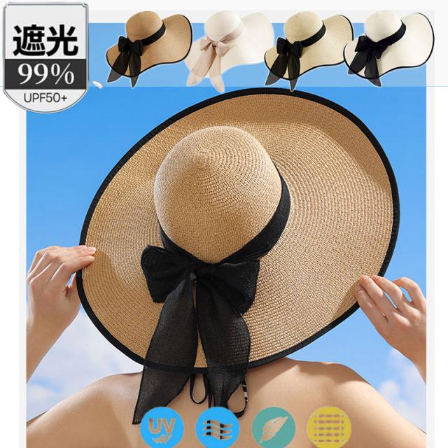ポイント超超祭 麦わら帽子 日焼け止め ハット 帽子 つば広 ストローハット 折りたたみ リボン キャペリンハット レディース 春夏 UVカット 紫外線対策 運動会
