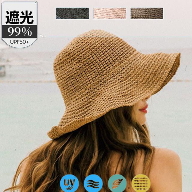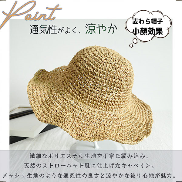 ポイント超超祭 ストローハット レディース 帽子 麦わら帽子 無地 折りたたみ つば広 キャペリンハット 日焼け止め 紫外線対策 天然素材 プレゼント 旅行 小顔効果