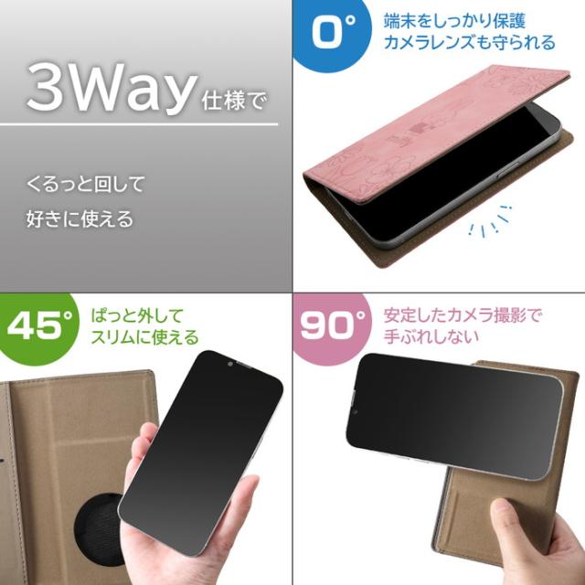 『ミッフィー ( miffy )』のデザインが印刷された表情のあるむら染めPUレザーとトープ色のPUレザーを組み合わせた多機種対応スマートフォンケース。