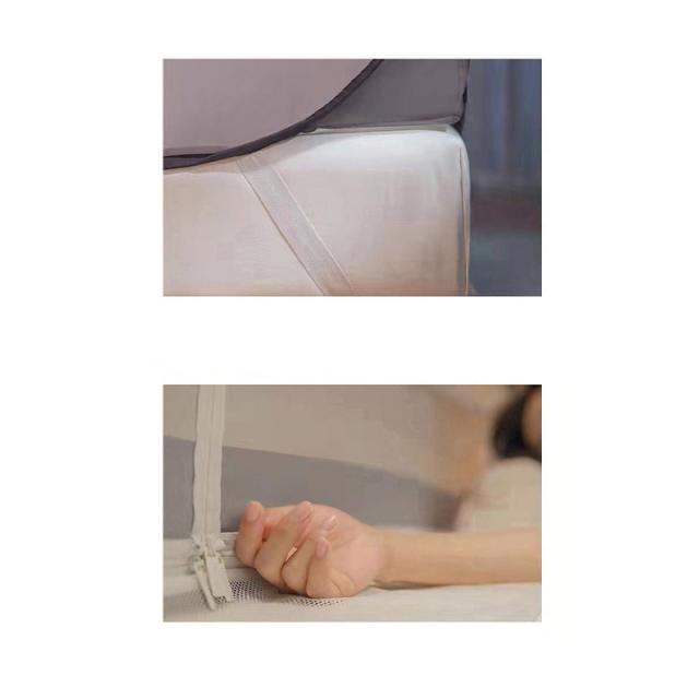【全保護型】密度が高いメッシュ 底部は虫刺され防止の布がつきますので 睡眠の時 蚊帳の端に触れても大丈夫です。蚊帳を使えば窓を開けておいても虫さされの心配がないので エアコンの風が苦手な方にもオススメです。