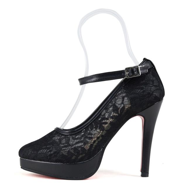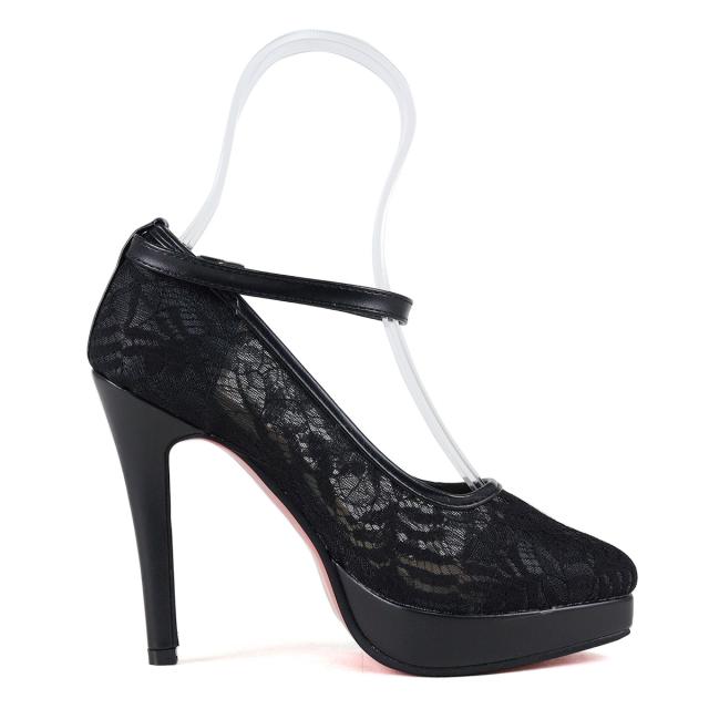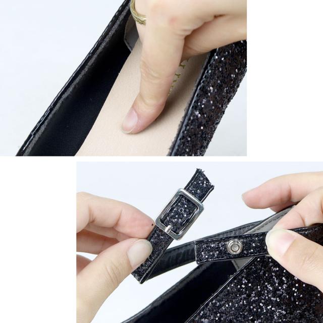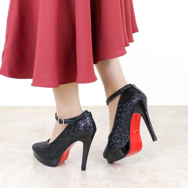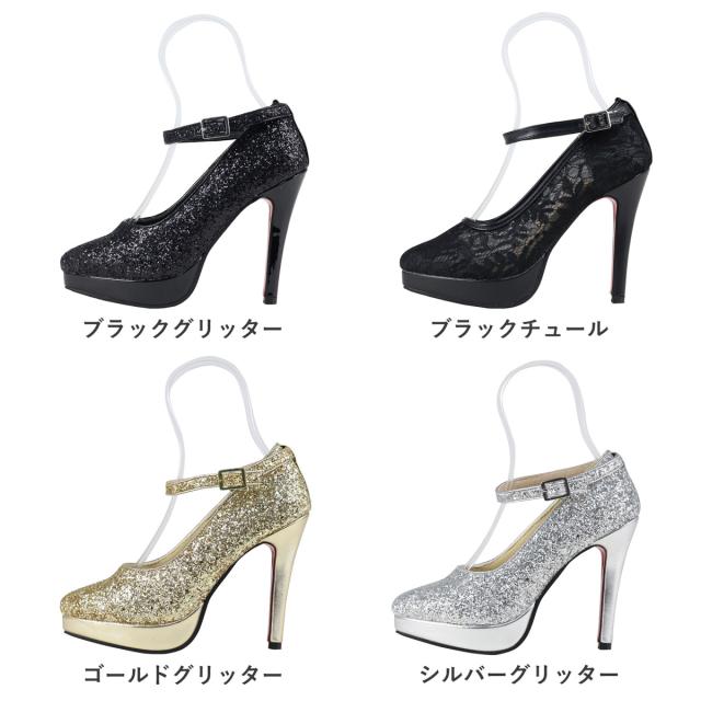 パンプス ハイヒール ピンヒール ストラップ 12cmヒール グリッター ラメ チュール 合皮 ポインテッドトゥ ブラック 22-25cm No.1125-2 リバティードール