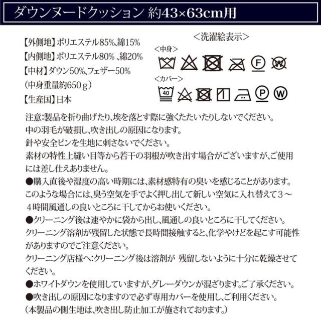 ダウン 43×63cm | ダウン 45×45cm | ダウン 50×50cm | ダウン 60×60cm |