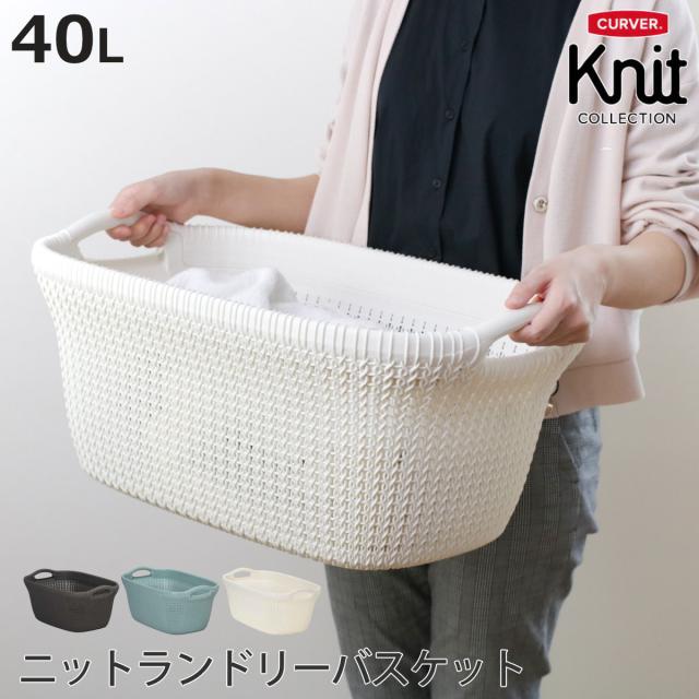 ランドリーバスケット CURVER ニットランドリーバスケット 40L ( カーバー バスケット ランドリー 持ち手付 洗濯 脱衣かご 洗濯かご 収納 おもちゃ 水回り 脱衣所 シンプル 軽量 ニット模様 )