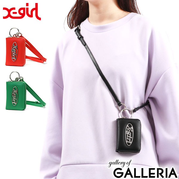 エックスガール/X-girl/OVAL LOGO COIN & CARD CASE/コインケース/カードケース/小銭入れ/ミニ財布/コンパクト/小さめ/シンプル/ネックストラップ/首かけ/斜め掛け/ナナメ掛け/ロゴ/お洒落/オシャレ/かわいい/可愛い/女子高生/女子/中学生/高校生/学生/ブランド/レディース