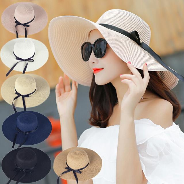 ペーパーハット つば広ハット レディース 麦わら帽子 ハット帽子 蝶結び つば広UVカット 紫外線 日よけ帽 折りたたみ可能 春 夏 夏用 春夏 海 旅行 自転車 飛ばない 収納便利 UV対策 折りたたみ 優雅 顎紐対応可 サイズ調節可 通気 母プレゼント 彼女 ギフト エレガント
