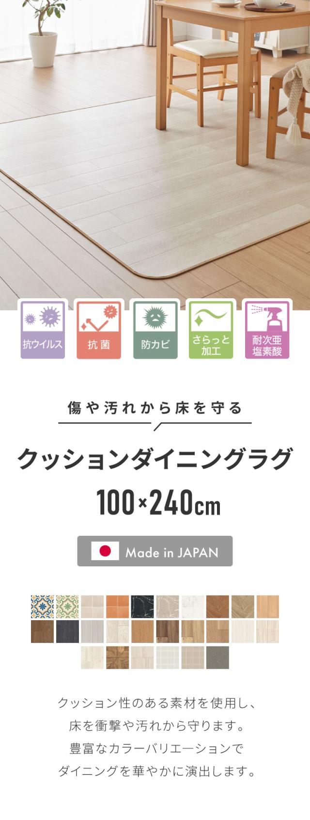 クッションフロア 100×240cm ダイニングラグ 日本製 フロアシート 撥水 抗菌 防カビ 傷防止 フロアマット クッションシート ダイニングラグ おしゃれ ウッドカーペット ジョイントマット(代引