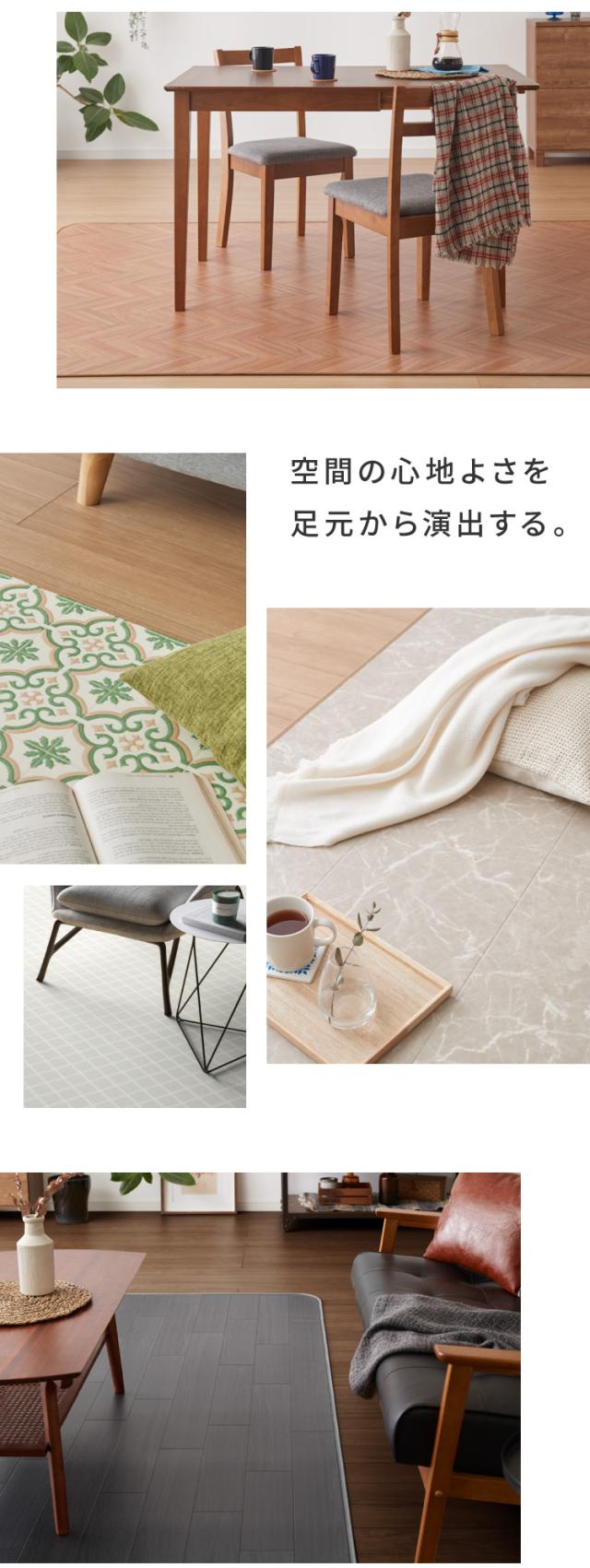 クッションフロア、ジョイントマット、フロアマット、クッションマット、クッションシート、ダイニングラグ、ラグ、マット、ウッドカーペット、カーペット、模様替え、DIY、簡単、敷くだけ、置くだけ、1人暮らし、賃貸、引越し、新生活、撥水、抗菌、防カビ、リビング、フローリング、ダイニング、国産、日本産、ペット、犬、猫、子供、上京、マンション、戸建て、安心、安全、ホテル、旅館、温泉、施設、オフィス、民泊、寝室、フリーカットシート、木目柄、石目柄、大理石、木目調