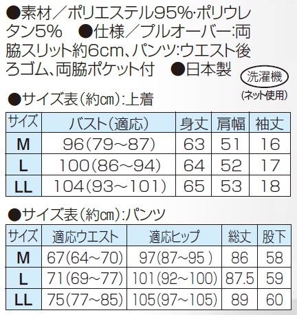 ●仕様/プルオーバー:両脇スリット約6cm、パンツ:ウエスト後ろゴム、両脇ポケット付
