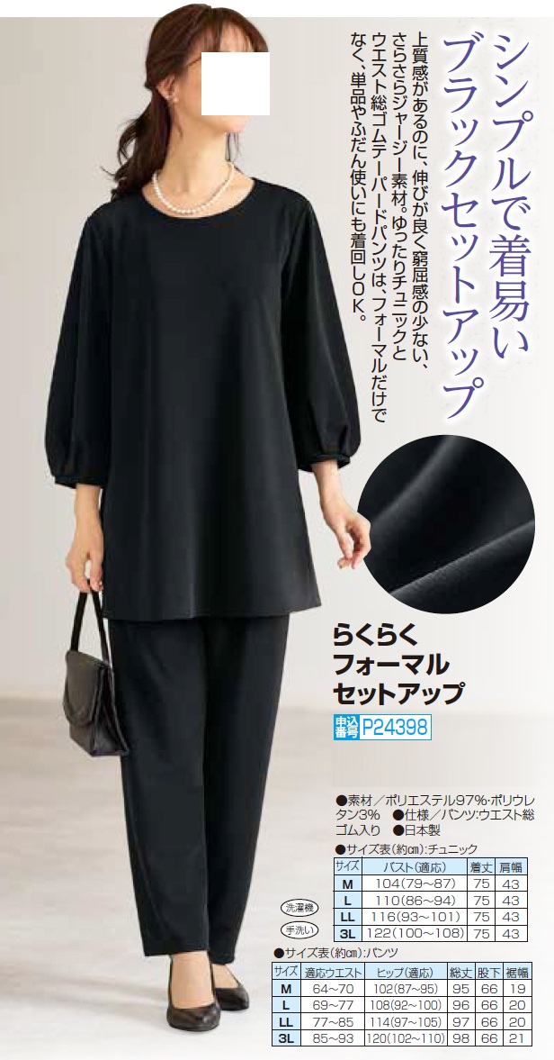 喪服 日本製 らくらくフォーマルセットアップ ブラックフォーマル ツーピース 上下セット レディース 婦人服 ミセス シニア 女性 黒 ブラック チュニックブラウス テーパードパンツ 体型カバー シンプル ファッション 礼服 40代 50代 60代 70代 80代 春夏 nss p24398
