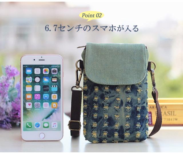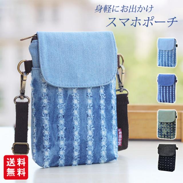 春新作 スマホポーチ スマホショルダー スマホポシェット 携帯カバン レディース メンズ 斜めがけ 手提げ かわいい 縦型 小さめ 軽量 デニム生地 ファッション ポイント消化 母の日
