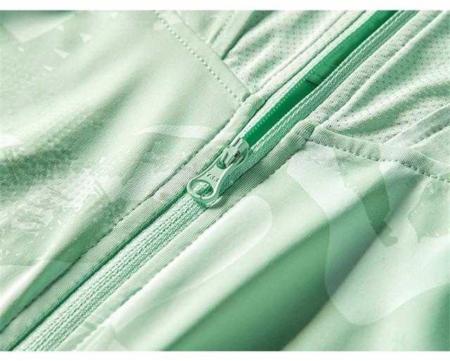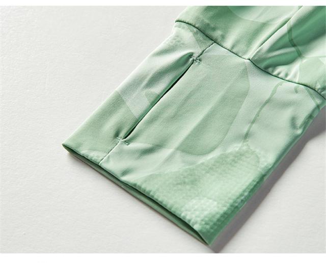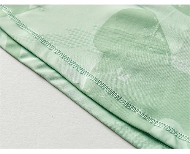【接触冷感素材】ひんやりとした独自の繊維技術で織り上げた素材を使用。通気性と速乾性に優れ、汗をかいても蒸れにくくストレスなく着用できます。