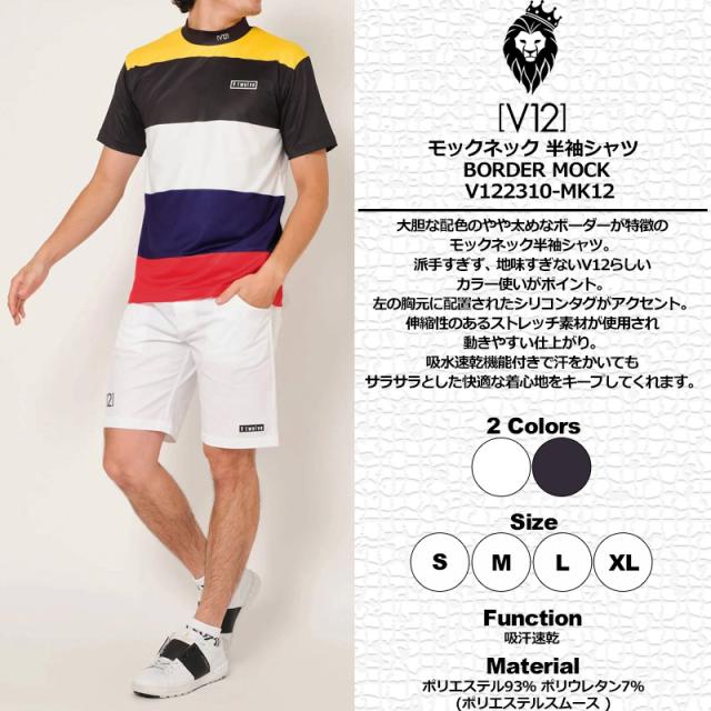 V12 ゴルフ メンズ 半袖 モックネック シャツ BORDER MOCK V122310-MK12 ヴィ・トゥエルヴ 【新品】SAAR ゴルフウェア おしゃれ モックシャツ ボーダー V12GOLF JUN1