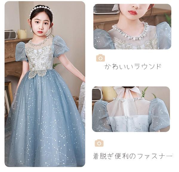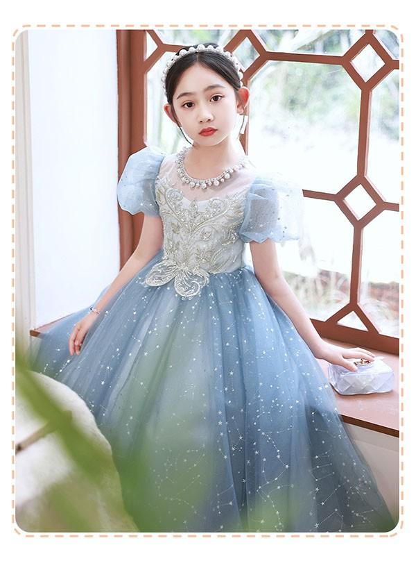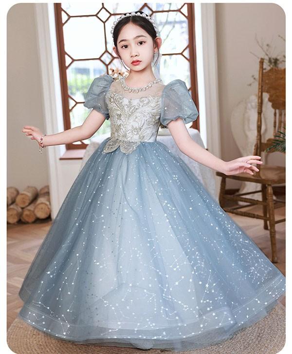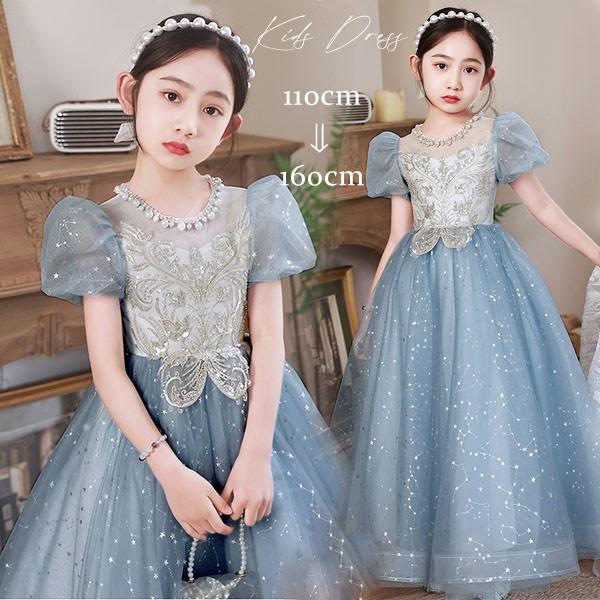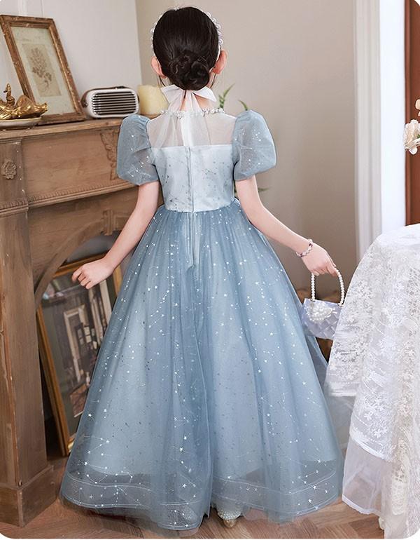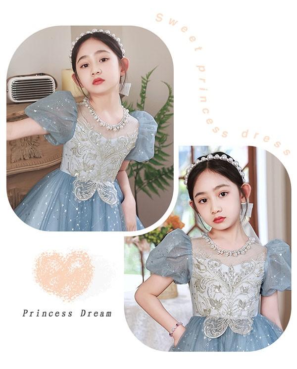 【レビュー投稿で+5%還元】子供ドレス ブルー ワンピース パフスリーブ ロングドレス ピアノ発表会 子供 ドレス チュール キラキラ 女の子 フォーマルドレス パーティードレス 結婚式 七五三 発表会 フラワーガール キッズドレス bi116zez