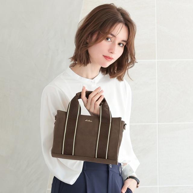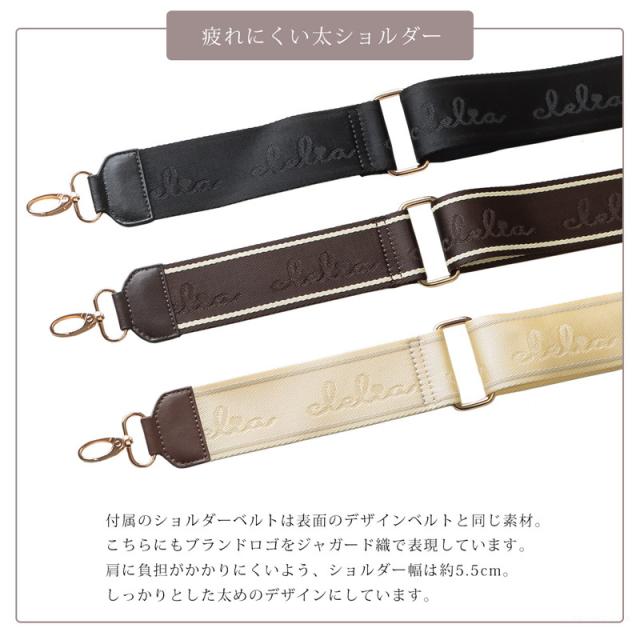 ショルダーベルトは、バッグのデザインベルトと同じ素材。こちらにもブランドロゴをジャガード織で表現しています。